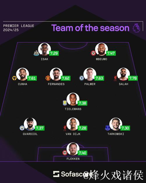 英超最佳阵:萨拉赫领衔,帕尔默&加克波在列